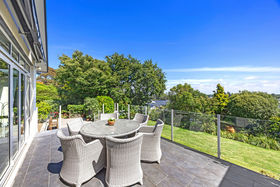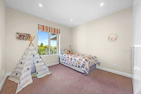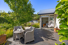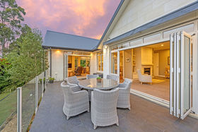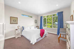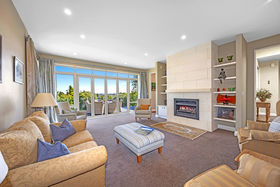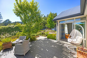 Light-filled living zones flow beautifully to the outdoors, with bifold doors opening to expansive tiled decking. Soak in the views stretching softly toward the Southern Alps and foothills, while enjoying the rare combination of level grounds, lush established landscaping, and exceptional privacy. A separate living room also spills onto the deck through double bifold sliders, offering flexible spaces for both family living and relaxed entertaining.